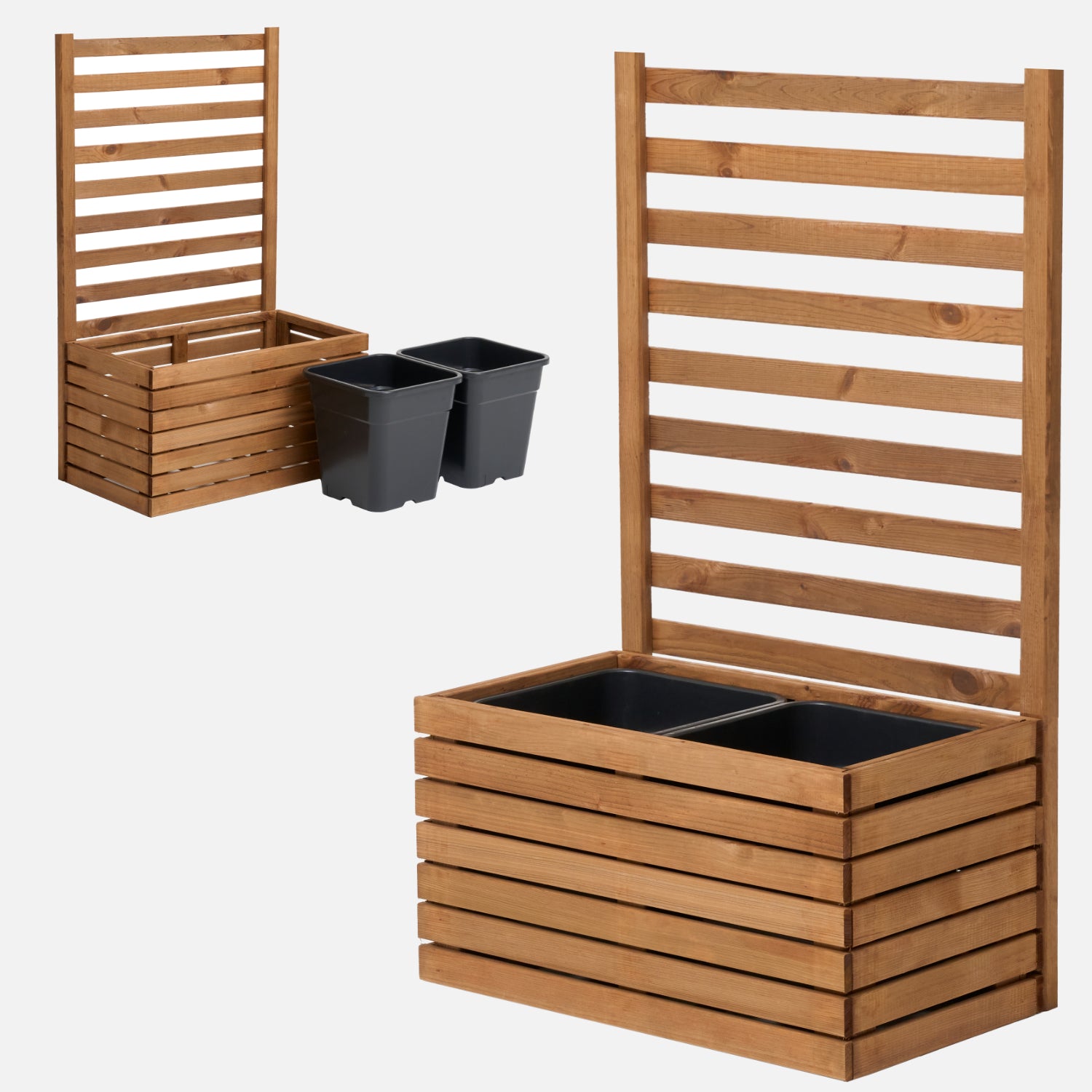 Dřevěný zahradní květináč s pergolovou mřížkou 112 cm, vložka 2x18 l, hnědá