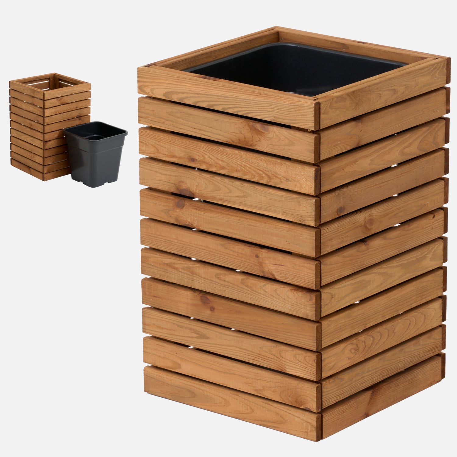 Velký hnědý dřevěný květináč 36 x 36 x v55 cm