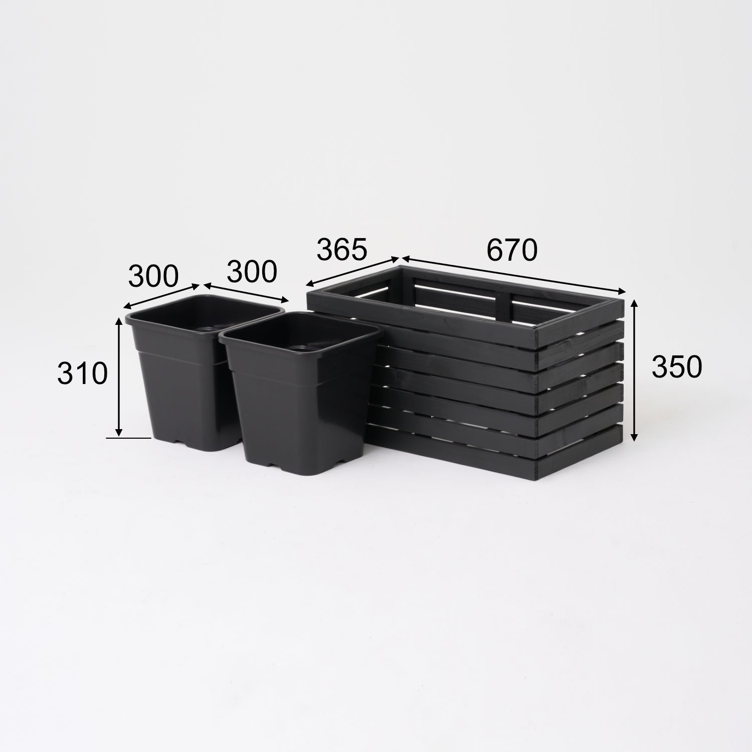 Schwarzer anthrazitfarbener rechteckiger Holzblumentopf, 67 x 36 x H 35 cm