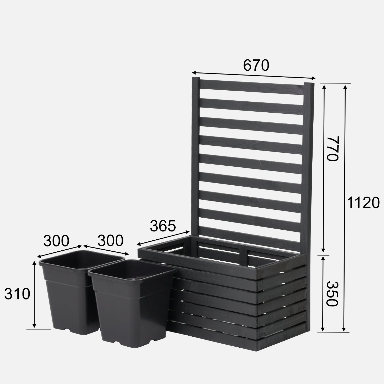 Gartenkübel aus Holz mit Pergola-Rankgitter, 112 cm, 2 x 18 l Einsatz, anthrazit