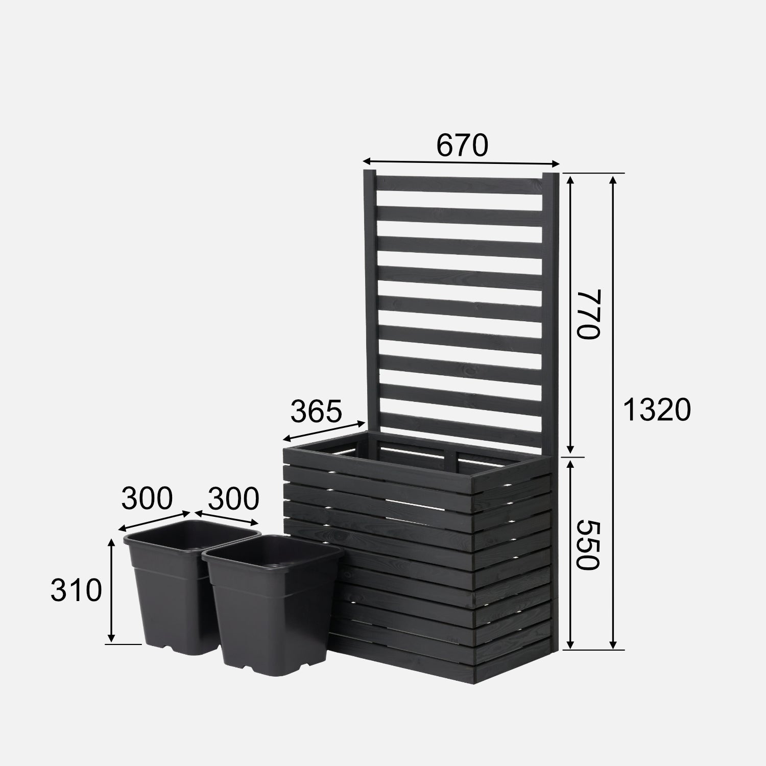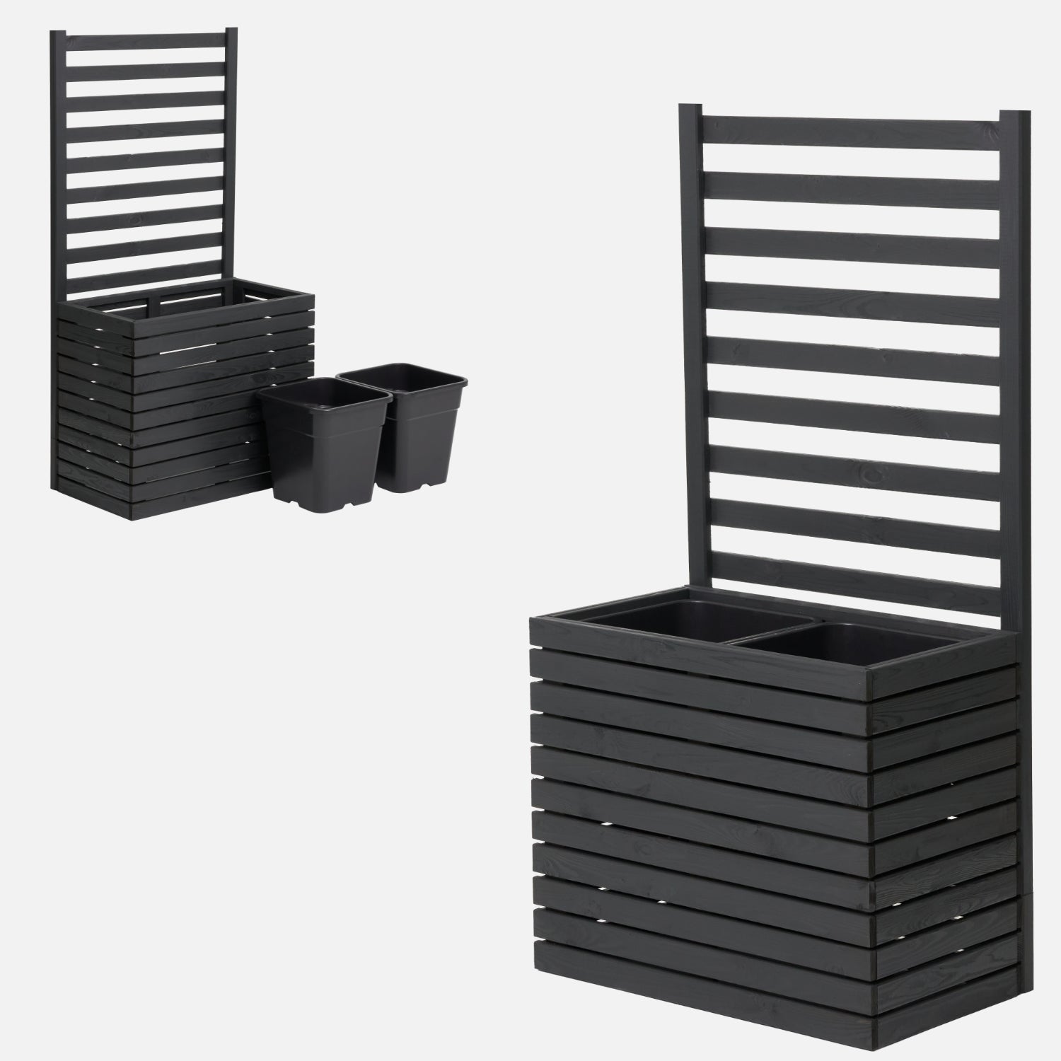 Gartenkübel aus Holz mit Pergola-Rankgitter, 132 cm, 2 x 18 l Einsatz, anthrazit