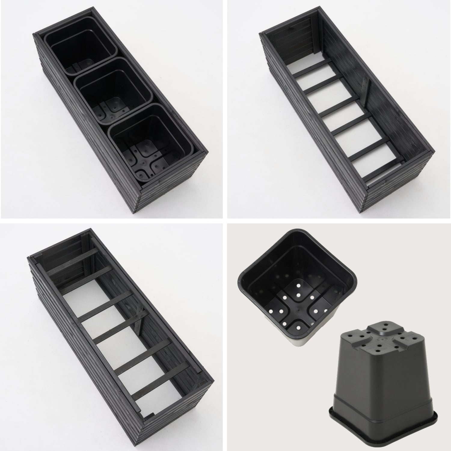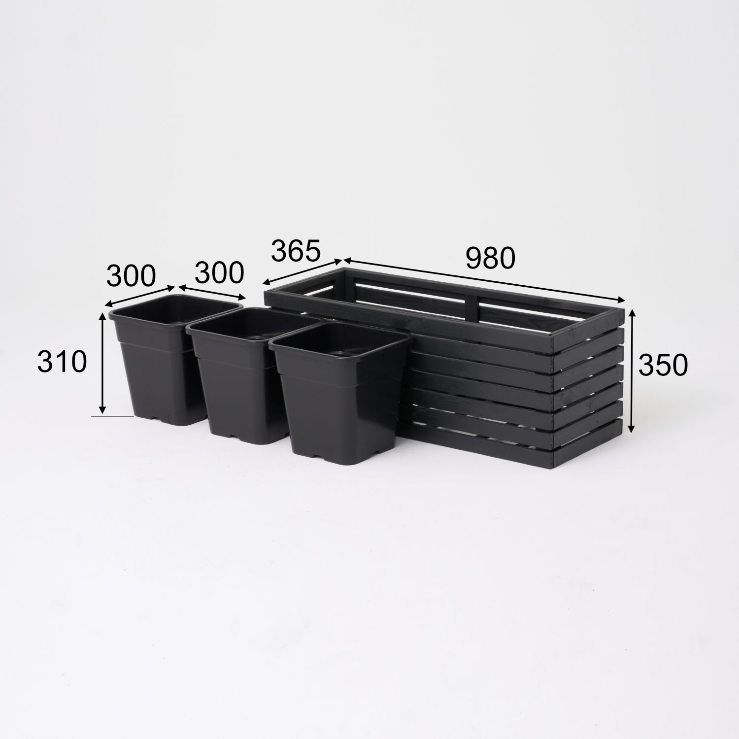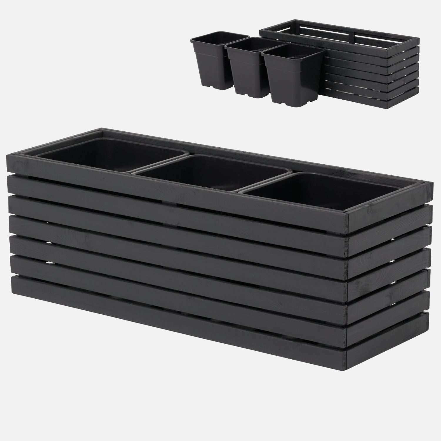 Großer anthrazitfarbener Gartenkübel 100 cm, 3 x 18 l Einsatz für Terrasse, Balkon oder Garten