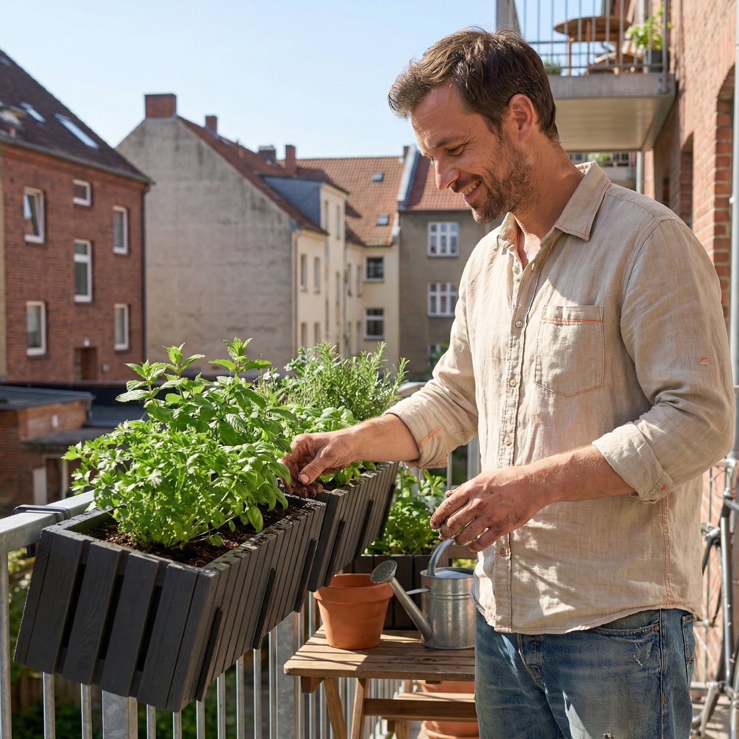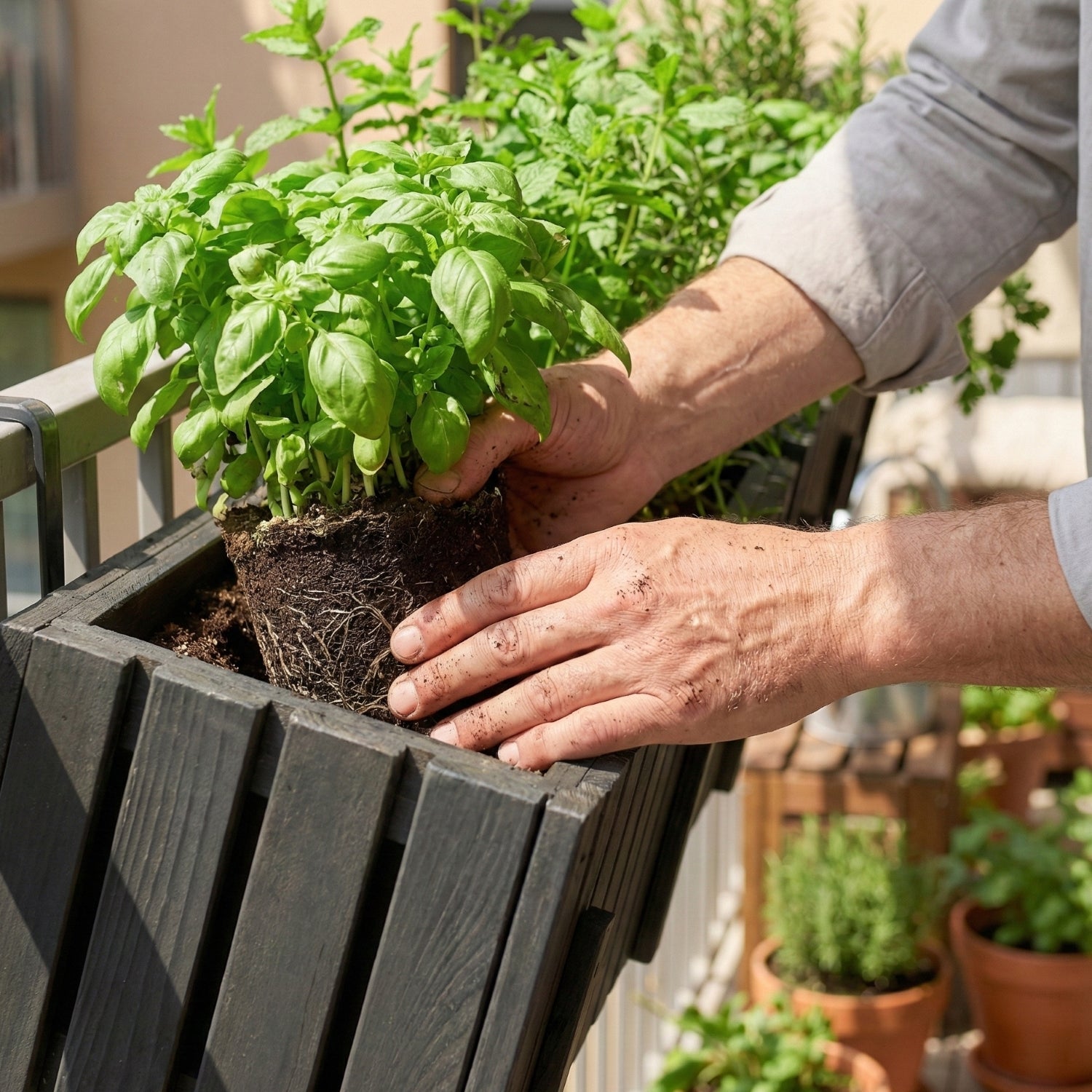 Un inserto que hace la vida más fácil : el contenedor extraíble acelera la plantación y el riego y, además, protege la terraza contra goteras.