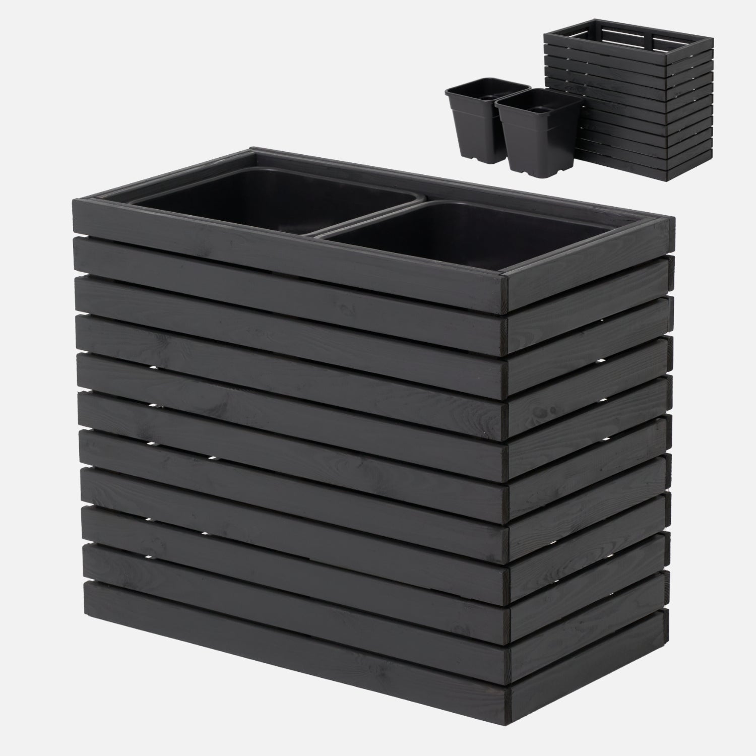 Maceta de madera para jardín, color antracita negro, alta, 55 cm, para terraza, balcón, jardín.