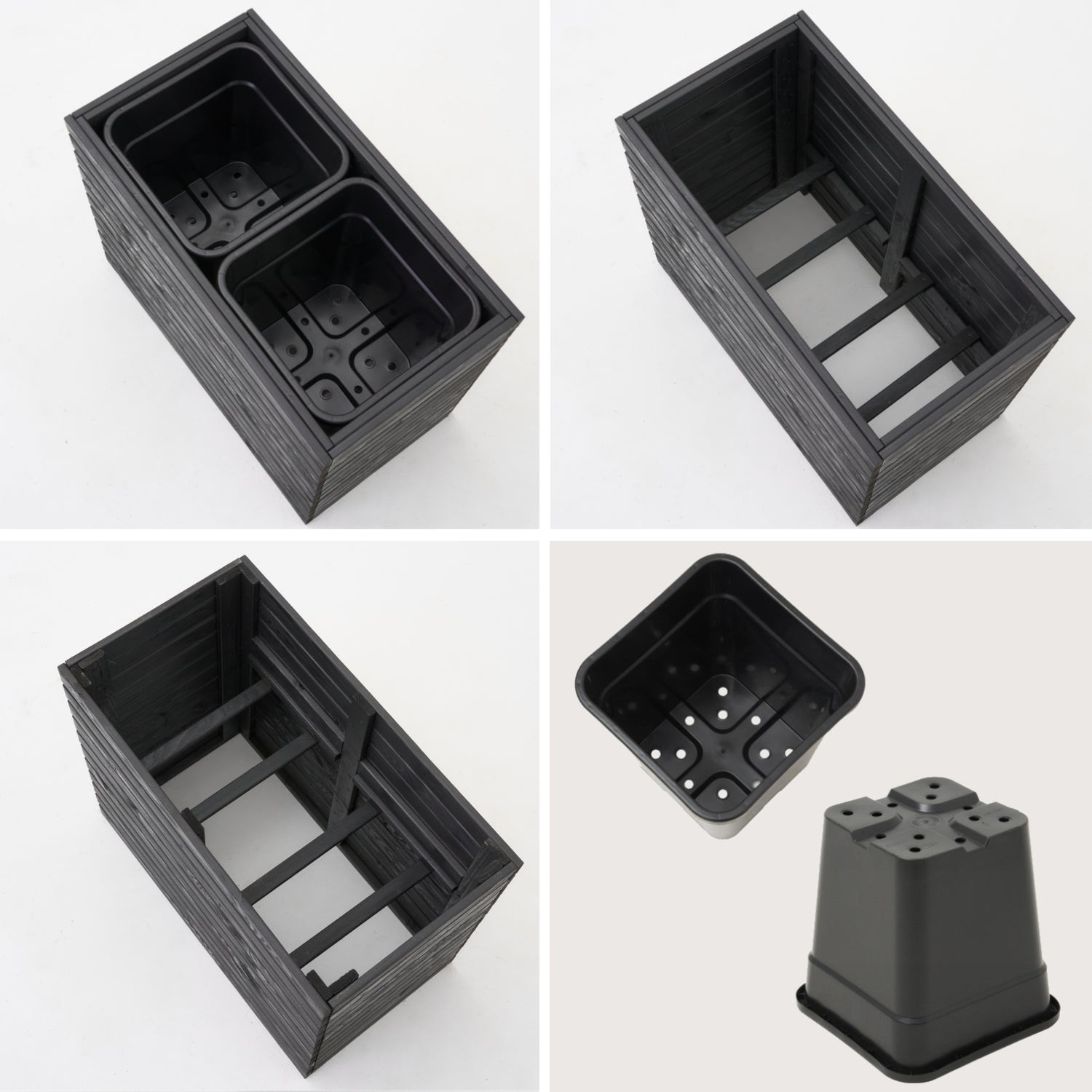 Cómodos insertos de 18 l con drenaje Facilitan el cuidado de las plantas, ayudan a drenar el exceso de agua y promueven un crecimiento saludable. Si desea una superficie perfectamente seca debajo de su maceta, puede optar por bandejas.