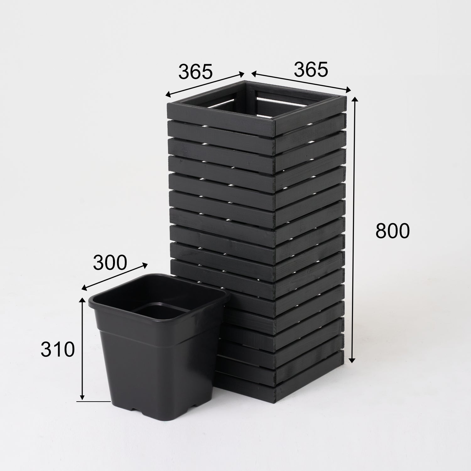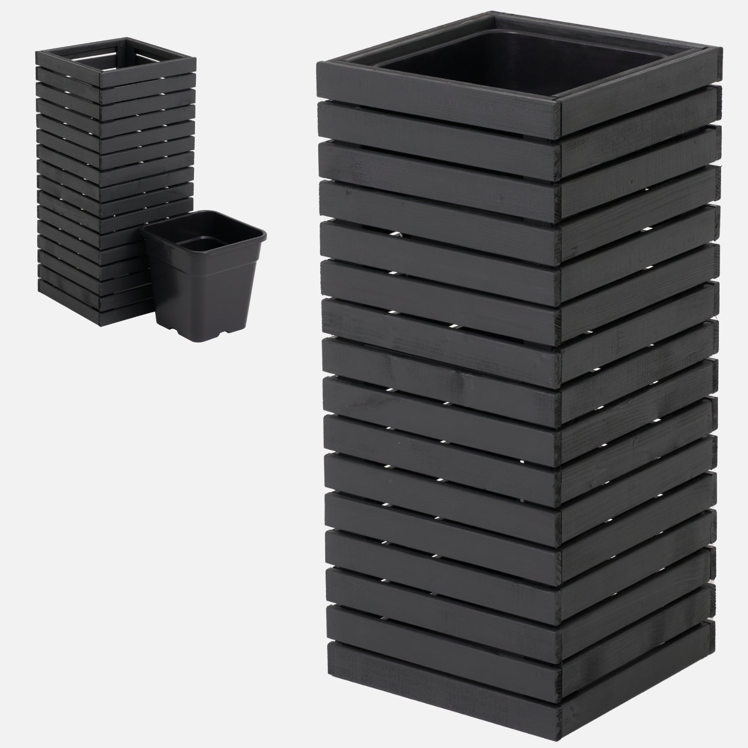 Maceta de madera para jardín, color antracita negro, alta, 80 cm, para terraza, balcón, jardín.