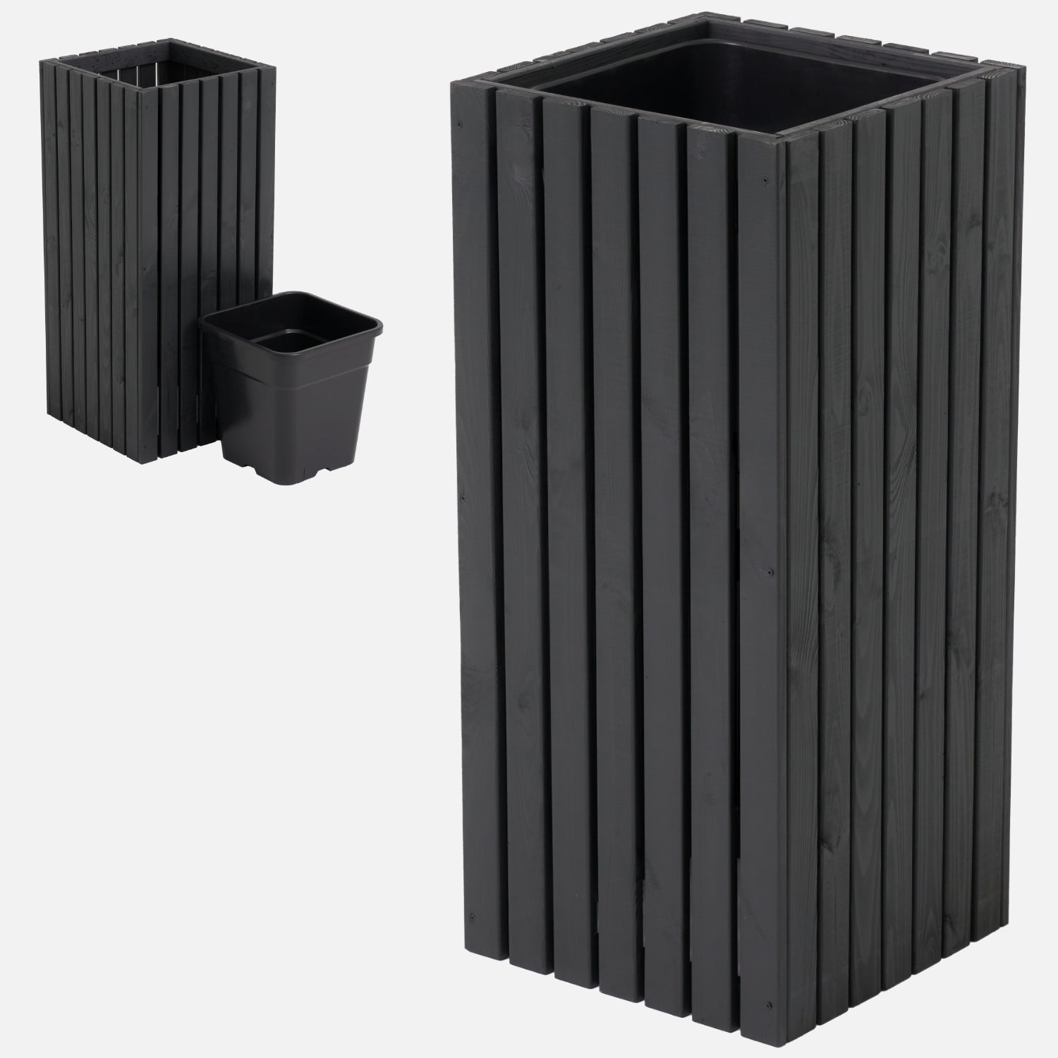 Maceta de madera para jardín, color antracita negro, alta, 80 cm, para terraza, balcón, jardín