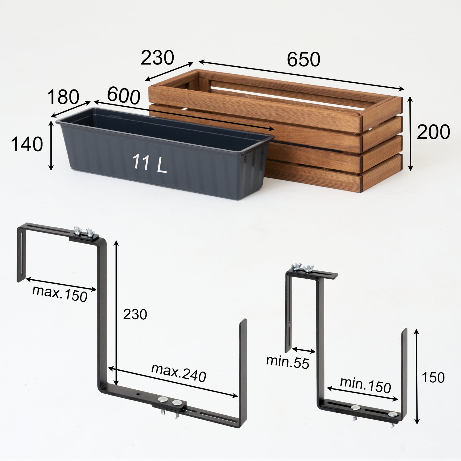 Pot de fleurs marron 65 cm + insert 11 l + poignée pour balcon/terrasse