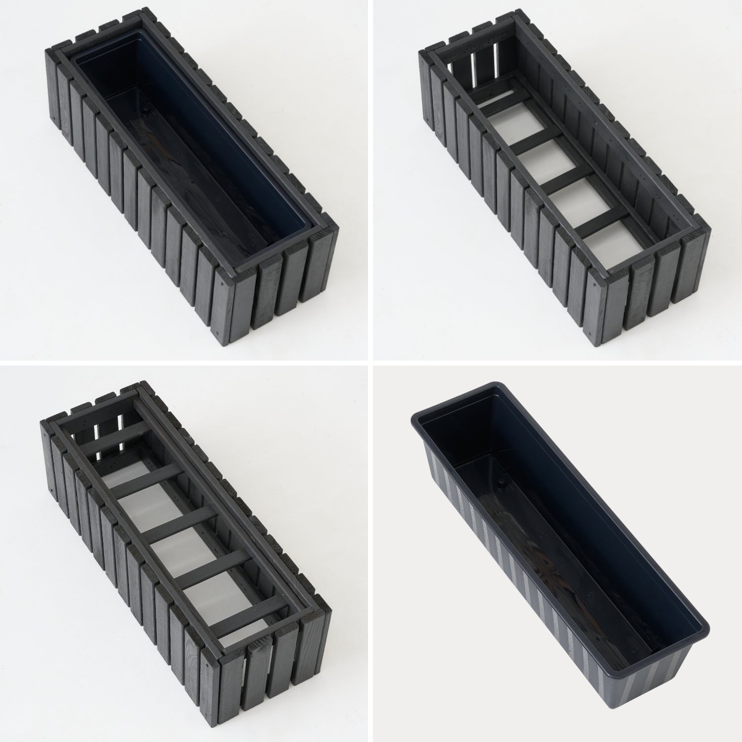 Costruito per durare : il legno impregnato in autoclave e verniciato in un intenso antracite resiste alla pioggia, al sole e al freddo, mantenendo la sua forma per molte stagioni.
