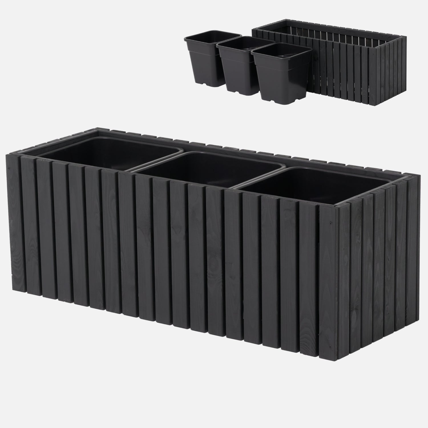 Grote antracietkleurige tuinpot 100 cm, 3x18l inleg voor terras, balkon of tuin