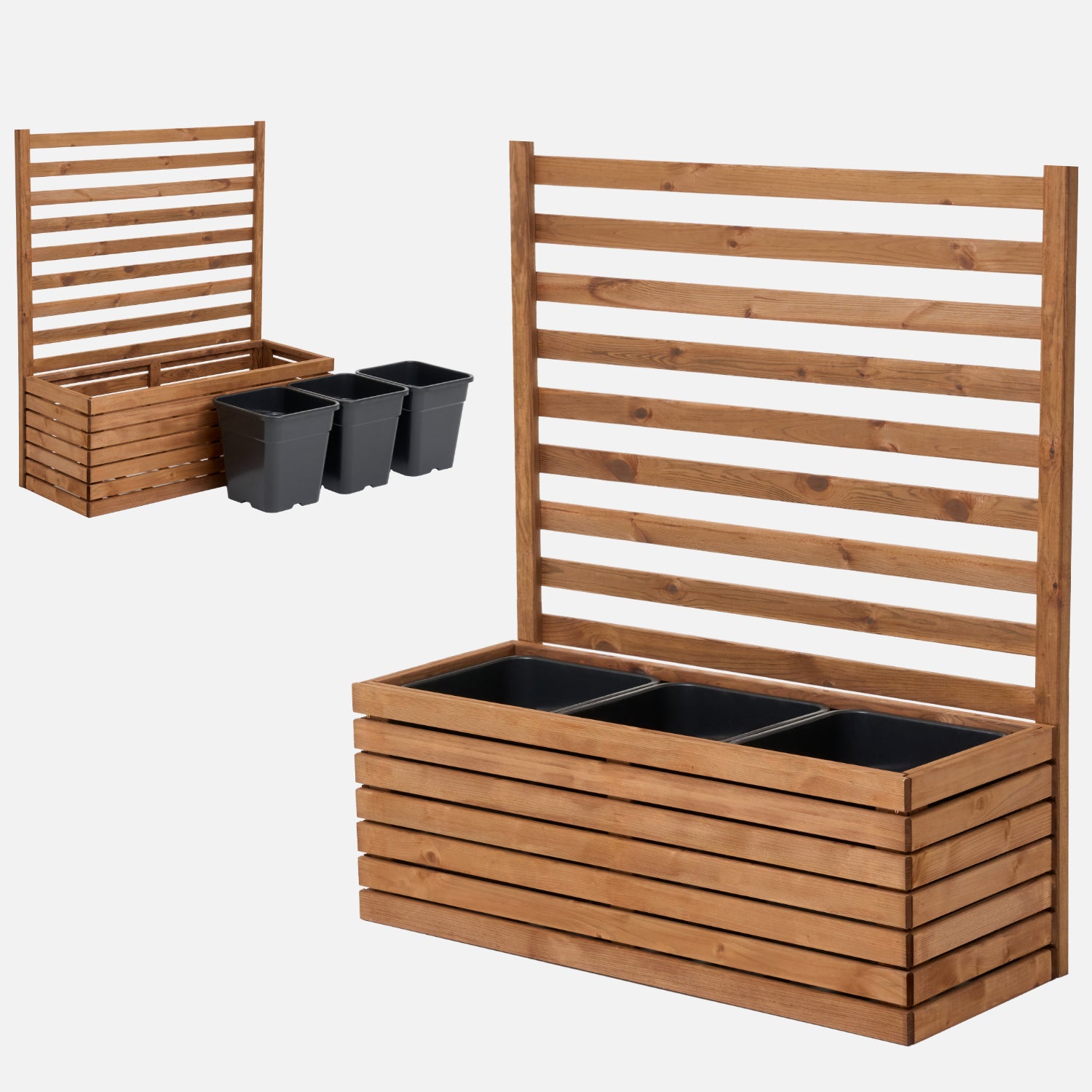 Donica ogrodowa drewniana z kratką pergola 112cm, wkład 3x18l, brązowa