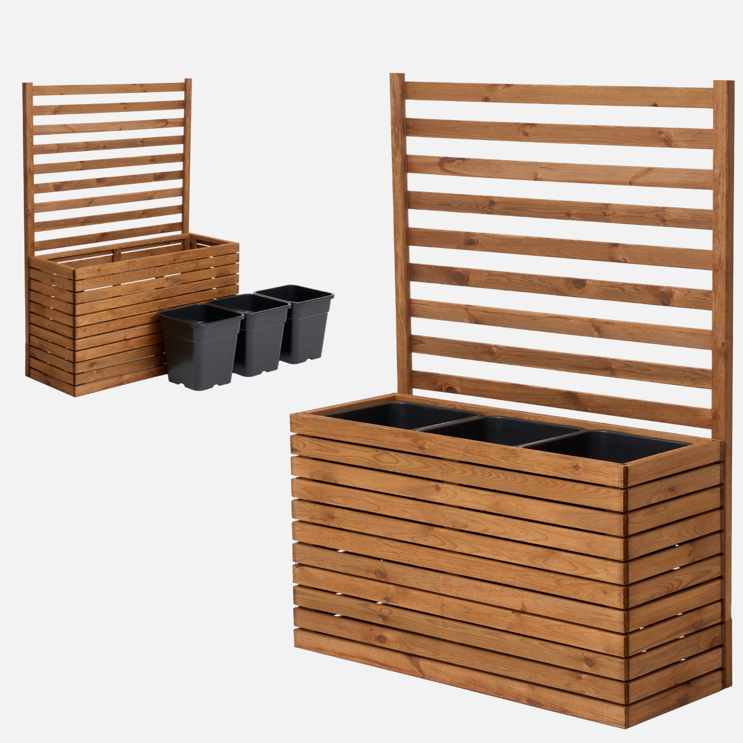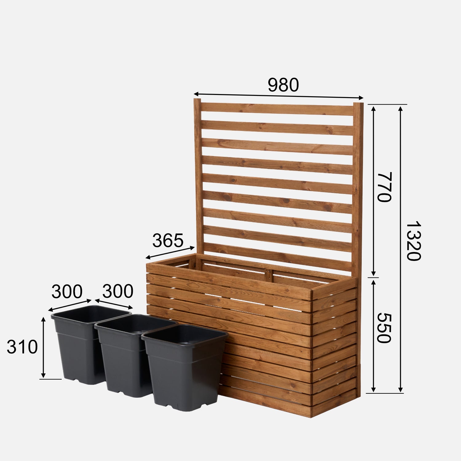 Donica ogrodowa drewniana z kratką pergola 132cm, wkład 3x18l, brązowa