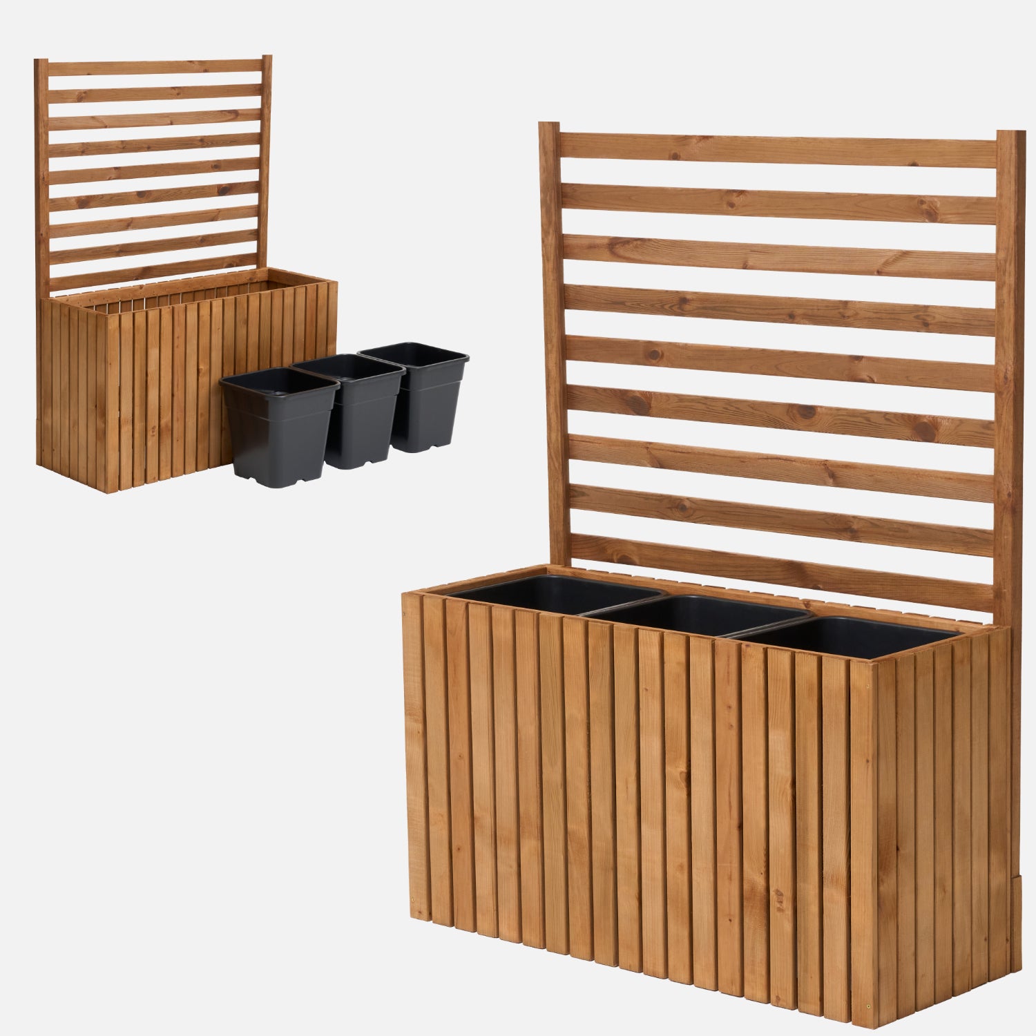 Donica ogrodowa drewniana z kratką pergola 132cm, wkład 3x18l, brązowa